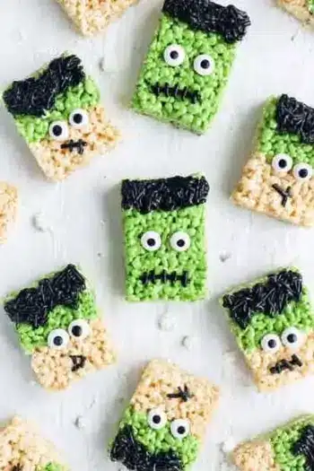 These Frankenstein Halloween Rice Krispie Treats are spooky, fun, and incredibly easy to make with just a few store-bought ingredients. Perfect for parties or Halloween dessert tables!