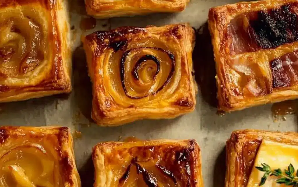- Cheddar & Shallot: Drizzle 1 tsp honey, add shallots, cheddar, thyme, then puff pastry